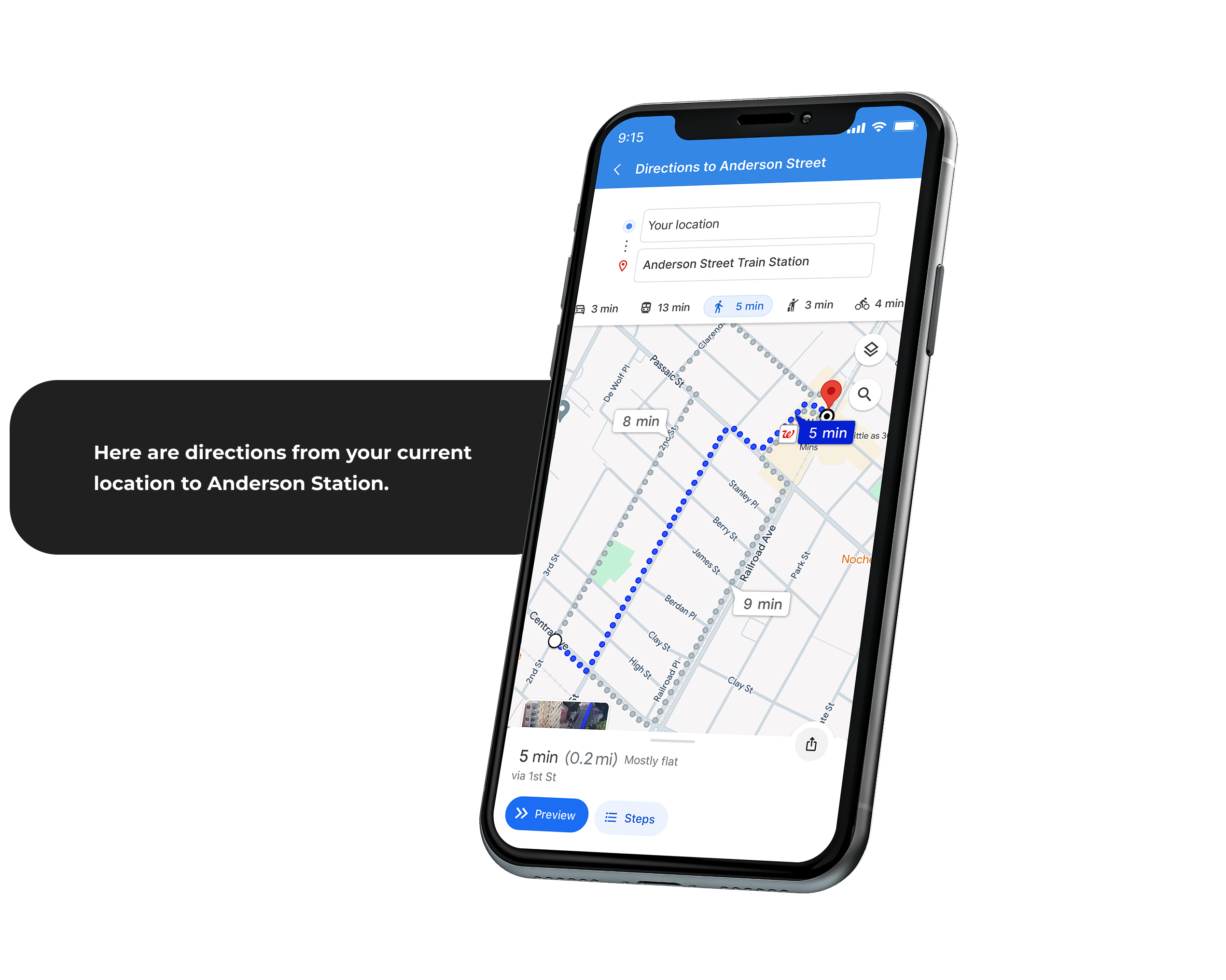 A GPS-powered module now shows nearby stations, walk times, track numbers, and live service updates. Icons and badges make transit options clear at a glance, reducing guesswork and speeding up decision-making on the go.