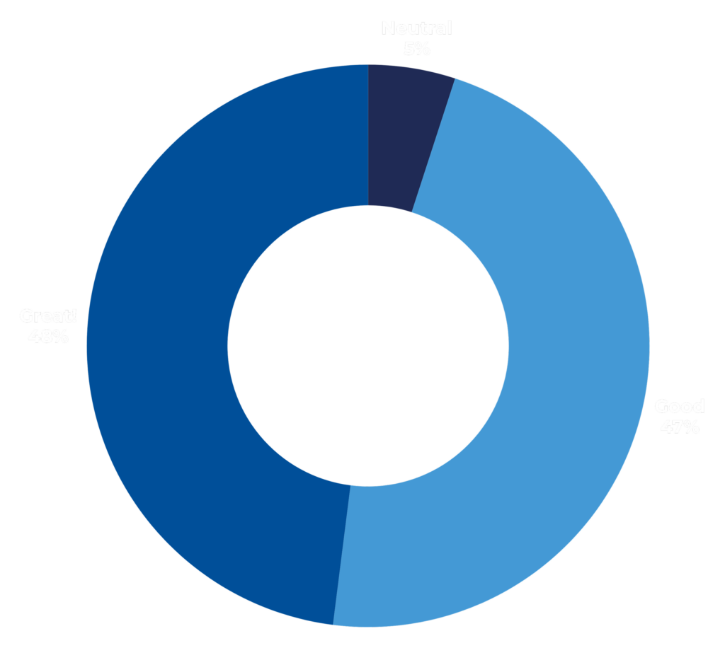 The final question, asked users to rate the updated designs on a scale of 1 to 5, with 5 being “great.” 95% of participants rated the updates as either “good” or “great,” rating average of 4.6 of 5, validating the success of the new designs.